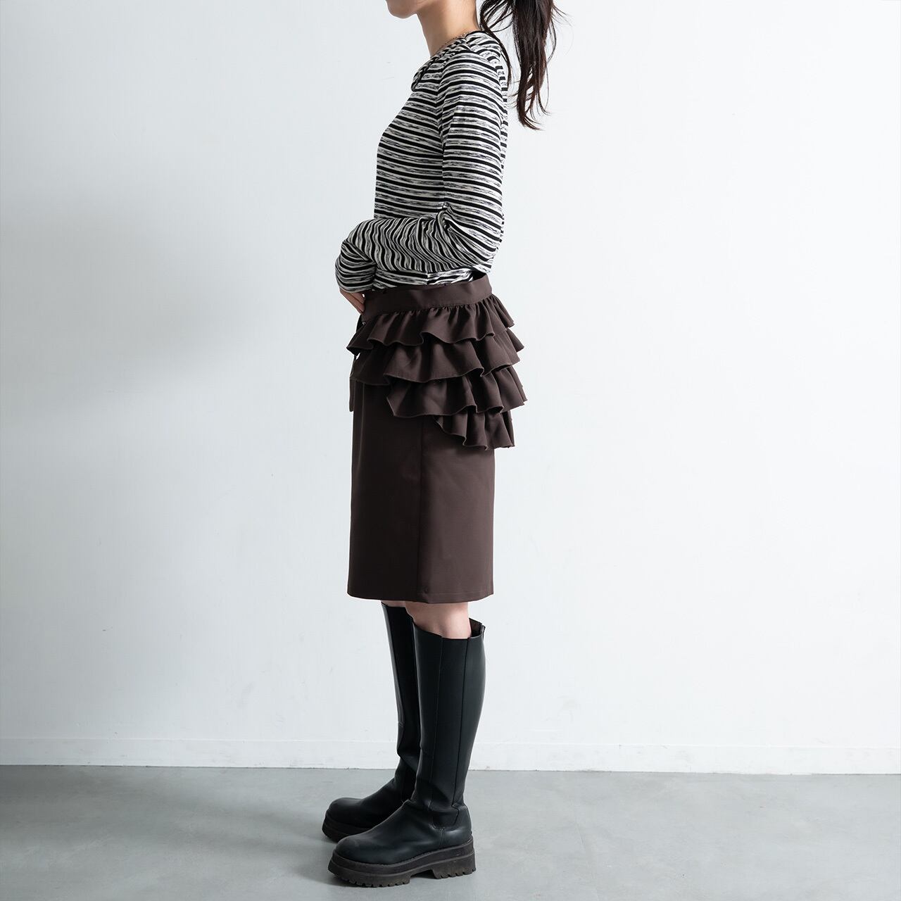 フリルが施されたベルトは、単品で使えて他のボトムスにも合わせやすく、コーディネートのアクセントとしておすすめです。