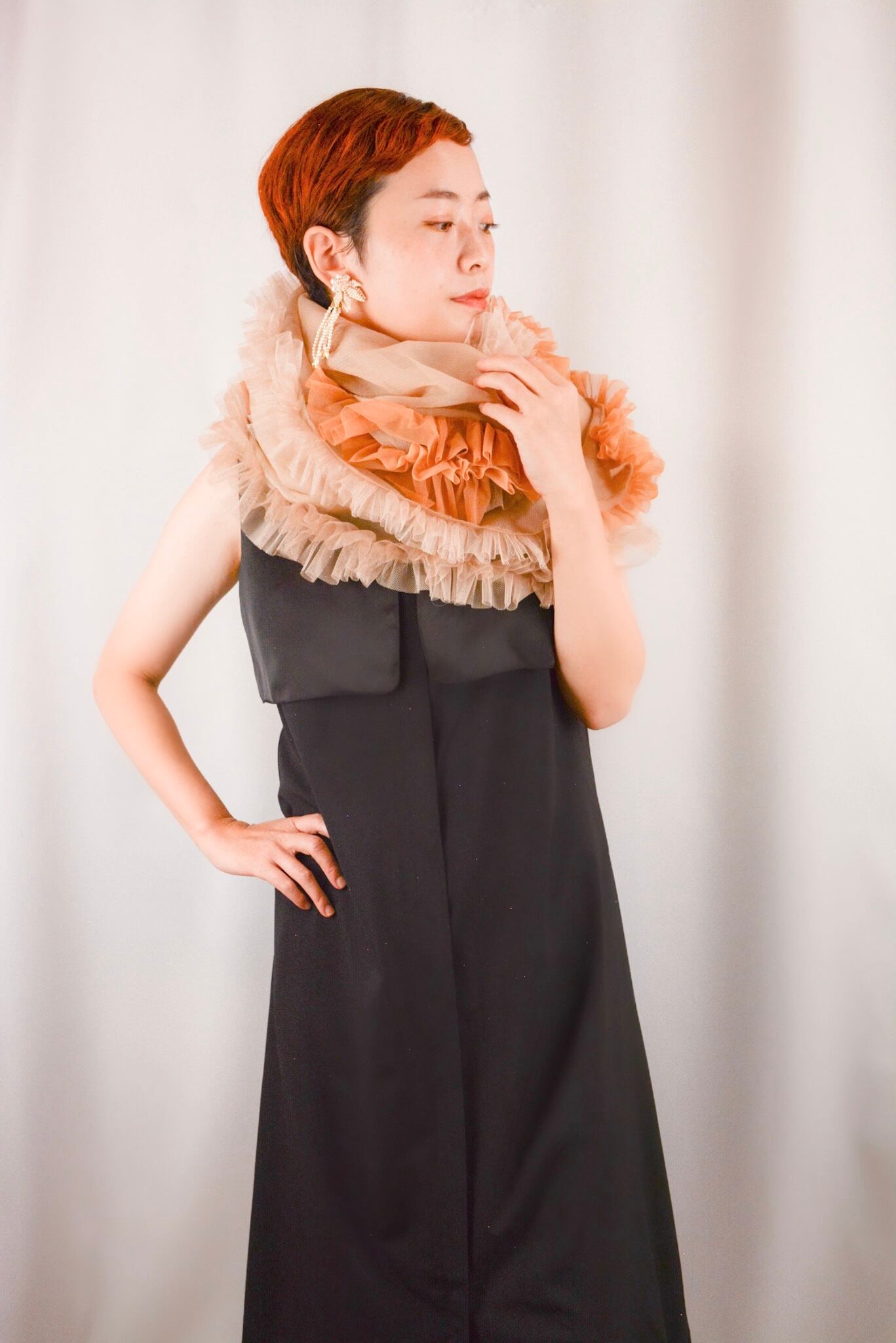 素材はシルクシフォンやシルクオーガンジー、チュールなどを使っております。